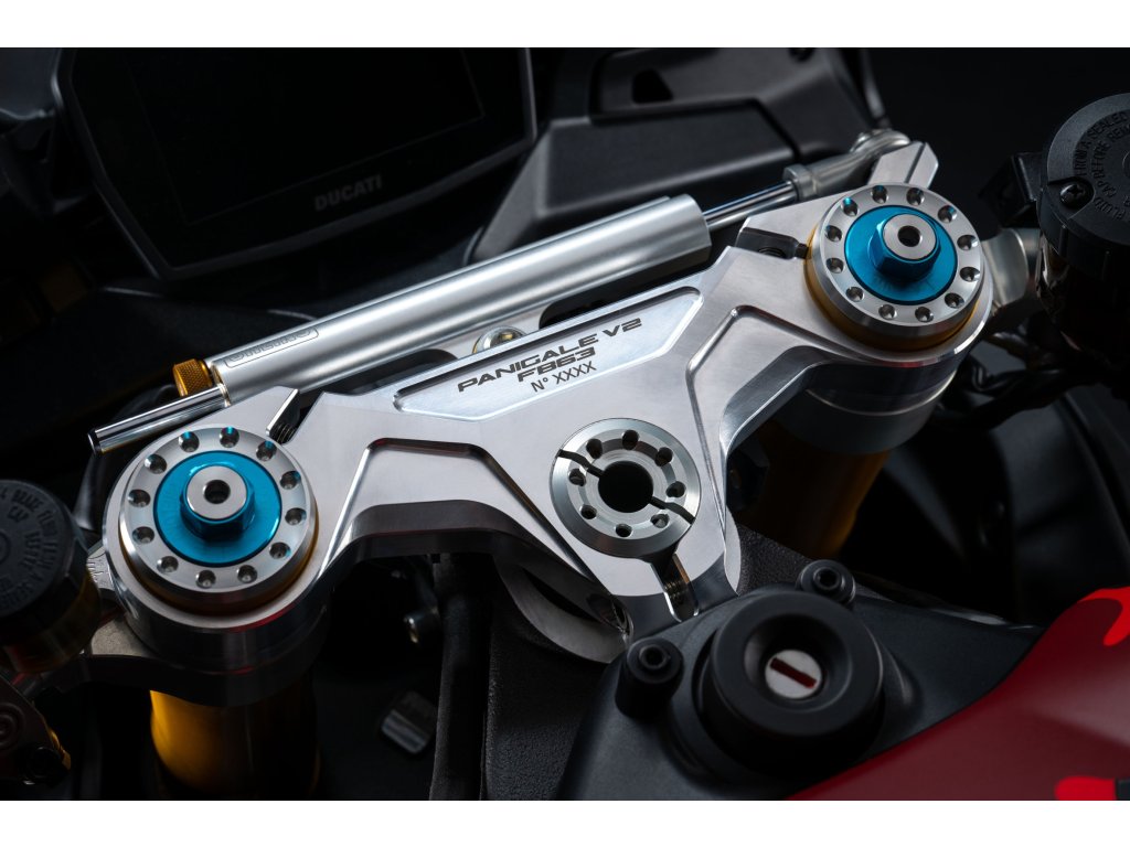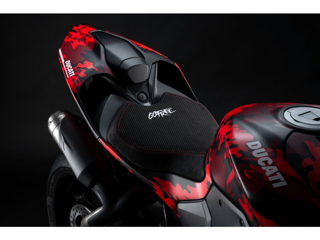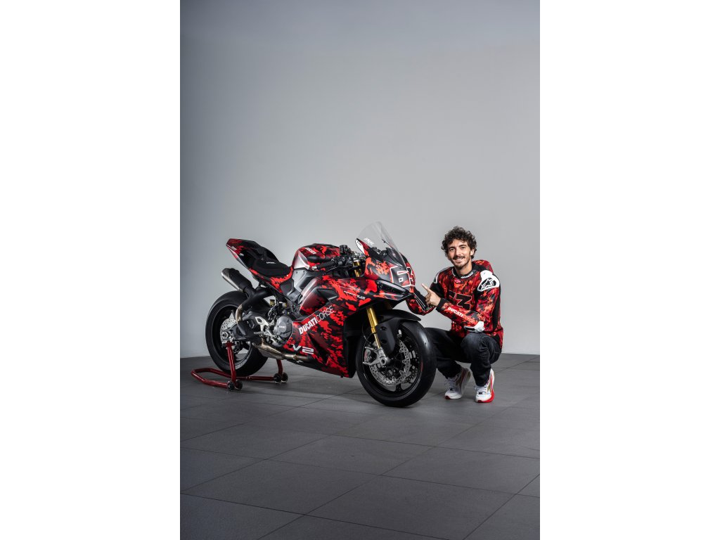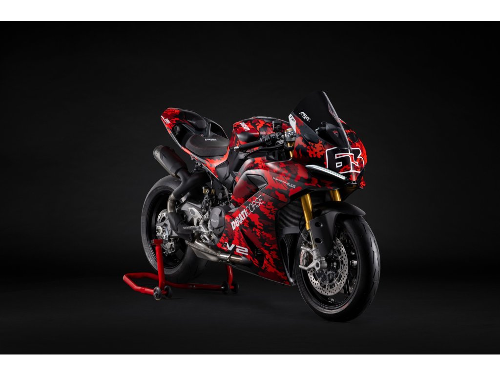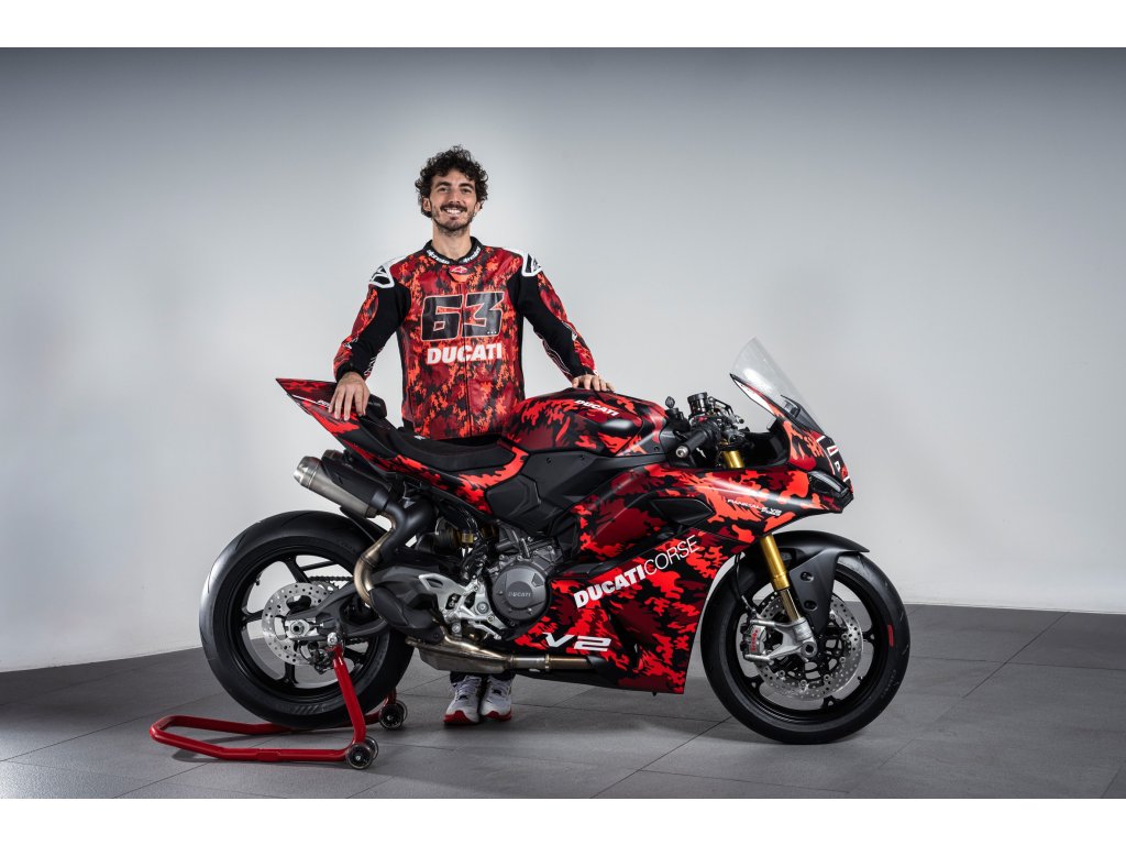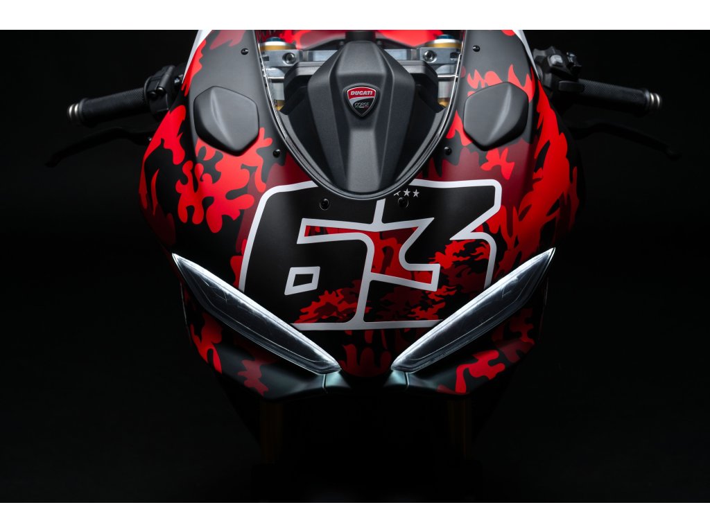 Panigale V2 S FB63 je poctou dvojnásobnému mistru světa Peccu Bagnaiovi a jeho osobnímu stylu. Livery vychází z jeho černo-červeného camo designu helmy, rukavic a bot, doplněného o identifikaci FB63 a ikonické heslo „GoFree“ na bocích kapotáže. Stejně jako MM93 jde o číslovanou edici s vylepšeným závodním nastavením, které z Panigale V2 S vytváří ještě ostřejší a rychlejší okruhový stroj. Ultralehké kované pětipaprskové ráfky, nastavitelný Öhlins tlumič řízení, sportovní řídítka z frézovaného hliníku, vyšší závodní plexi a gripy inspirované tovární DesmosediciGP. Výsledkem je výrazně rychlejší reakce předku, vyšší stabilita ve vysokých rychlostech a snazší pohyb těla při agresivní jízdě na okruhu.